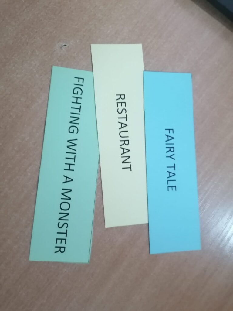 After the ice-breaking activities, the students were divided into 6 mixed groups and trained in workshops focused on drama technique. Thus, the students were invited to create some scenarios on certain given themes and to improvise plays for these scenarios. Although they faced difficulties due to cultural and language barriers, the students were finally able to complete the tasks.