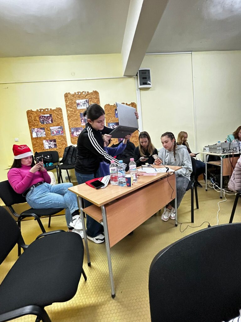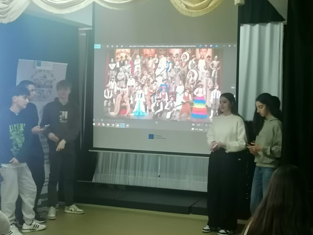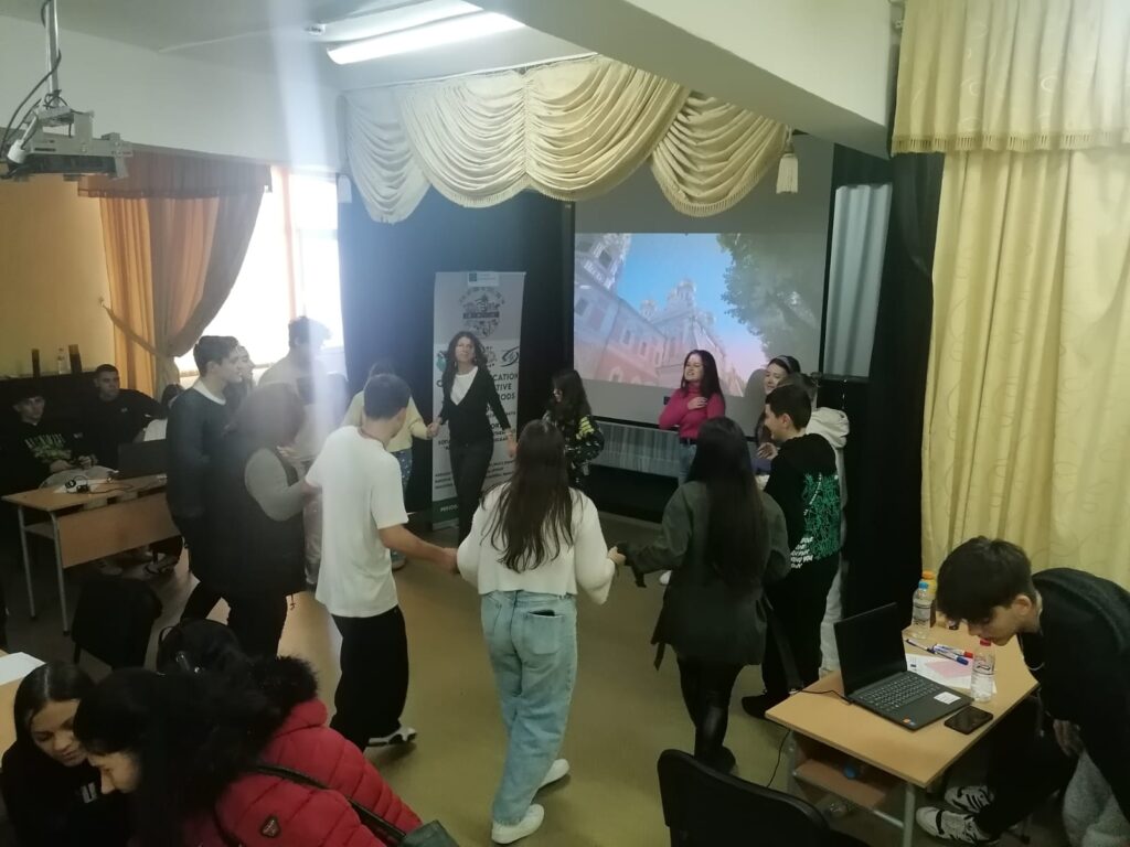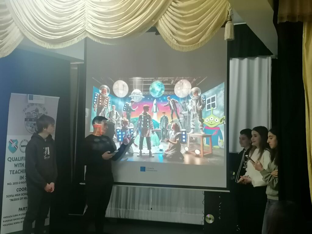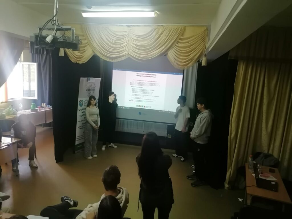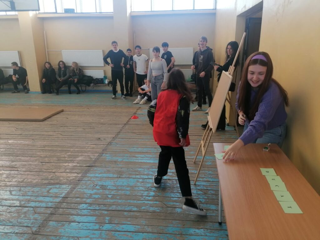 Today the students were also divided into mixed groups. They were invited to put their creative artistic and communication skills in English to good use. Each group had a requirement to solve: marketing for the Erasmus+ project, avatar creation with the help of artificial intelligence, music, dance, poetry. And this time, the students proved originality and ingenuity in solving the tasks; The second part was dedicated to sports competitions, which the students accepted and fulfilled with joy.